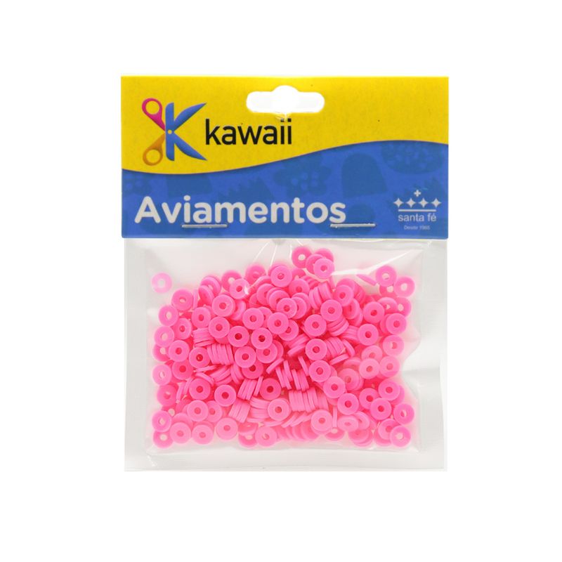 Miçanga Kawaii Emborrachada Disquinho Rosa Citrico 6mm - 20g