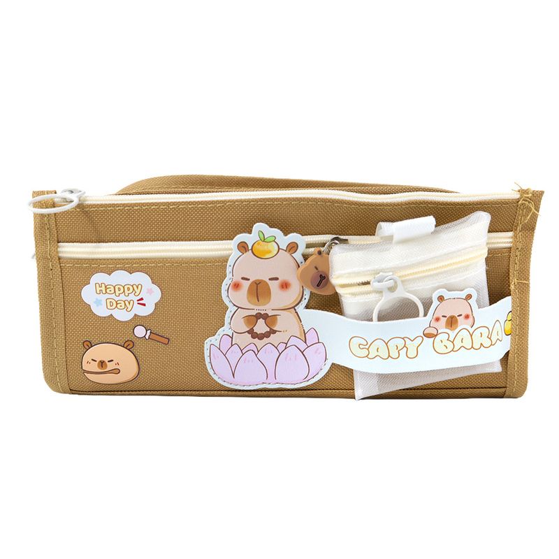 Estojo Kroma Capivara Pelúcia 3 Divisória e Acessório - Caramelo